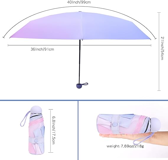 Lightweight & Portable: Mini umbrella is only weight 7.68oz, length 6.8inch, 40″canopy. About the same size as a mobile phone. Suitable for backpack,handbag even pockets!