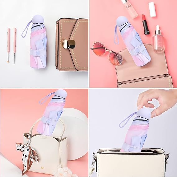 Compact Travel Umbrella, Travel Umbrella, Portable Mini Folding Umbrella, Small Pocket Umbrella for Rain, UV Protection Lightweight Portable Umbrella for Girls and Women
